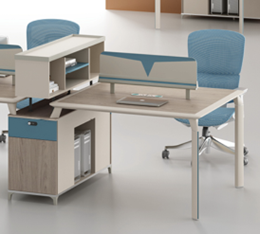 3 SEATER WORKSTATION WITH ONE SIDE LEG TABLE TOP 25MM THICKNESS INSERTED IN ALUM TABLE FRAME PARTITION SIZE: 800*300*12, WITH ALUM HOLDER SIDE CABINET SIZE: 340*1200*1100 CODE LOCK FOR SINGLE DRAWER EACH SEAT 1 X SWING DOOR FOR EACH SEAT MOQ: NOT KEEPING STOCKS, 10 PCS / SIZE