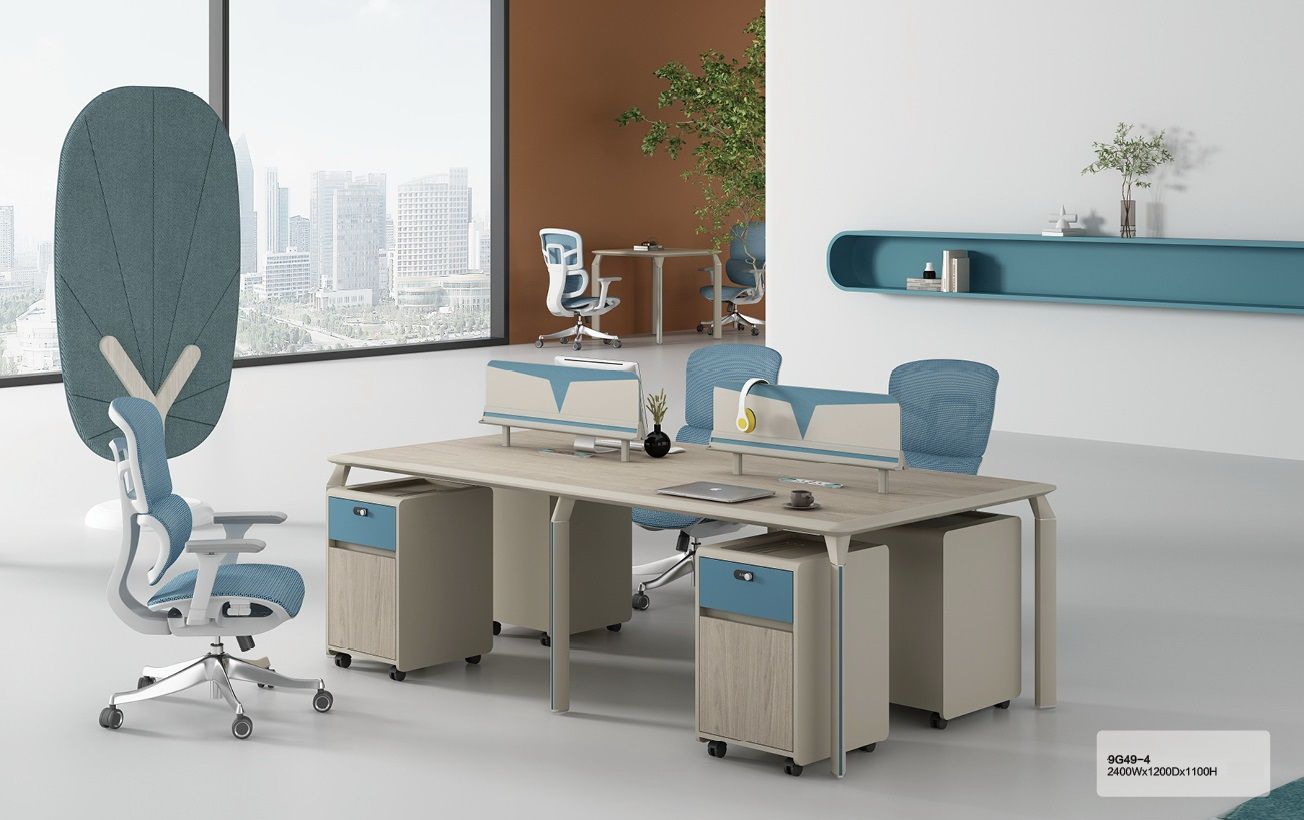 5 SEATER WORKSTATION TABLE TOP 25MM THICKNESS INSERTED IN ALUM TABLE FRAME 2 X PARTITION SIZE: 800*300*12, WITH ALUM HOLDER 4 x MOBILE PEDSTAL SIZE: 400*450*620 CODE LOCK FOR SINGLE DRAWER EACH SEAT 1 X SWING DOOR FOR EACH SEAT MOQ: NOT KEEPING STOCKS, 10 PCS / SIZE